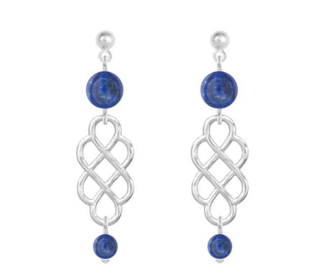 Boucles d’Oreilles Noeud Mystique en Argent rhodié et Pierres Naturelles 4mm/6mm Lapis Lazuli