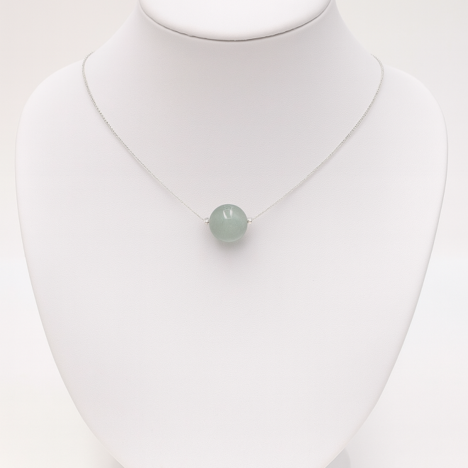Aventalya, la douceur minérale. Une aventurine naturelle suspendue à l’argent, pour une élégance végétale et essentielle.