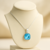 Bleu de Grâce est une lumière suspendue, une goutte d’azur taillée dans le cristal. Son pendentif cushion cut de 10 mm, aux reflets bleus profonds, évoque la fluidité d’un ciel d’été et la douceur des lagons. Monté sur une chaîne en argent 925 rhodié de 45 cm, ce collier incarne l’élégance discrète et la féminité céleste.