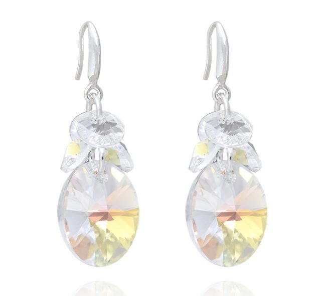 Boucles d’Oreilles Xilion Ovale en Argent rhodié et Cristal Aurore Boréale