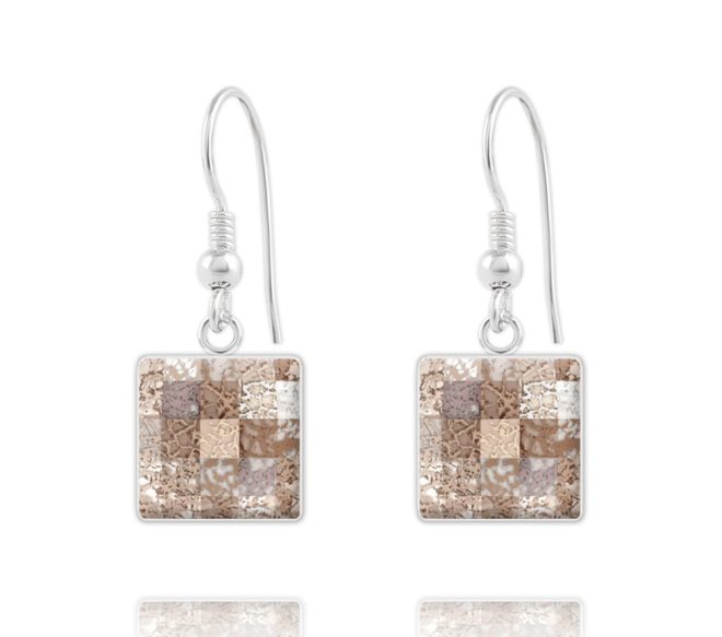 Boucles d’Oreilles Chessboard V2 en Argent et Cristal 10MM Rose Patina