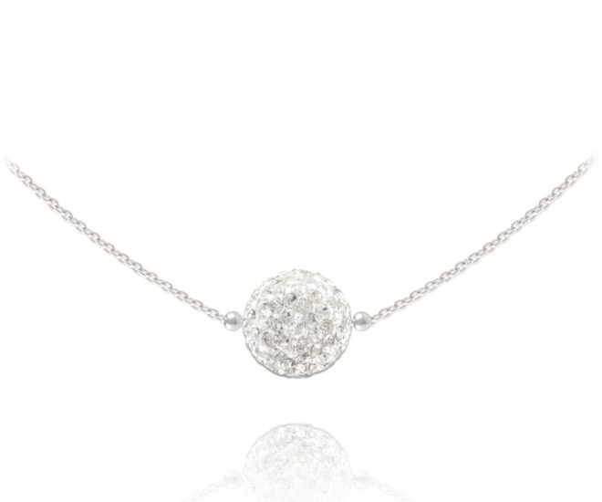 Collier Ras de Cou Disco Ball 10MM en Argent et Cristal Blanc
