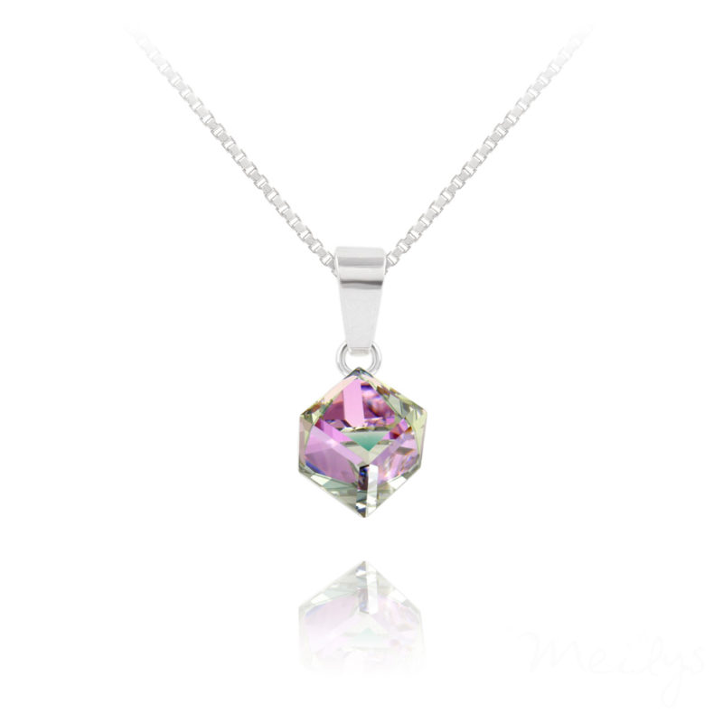 Collier Cube 6MM en Argent rhodié et Cristal Violet