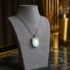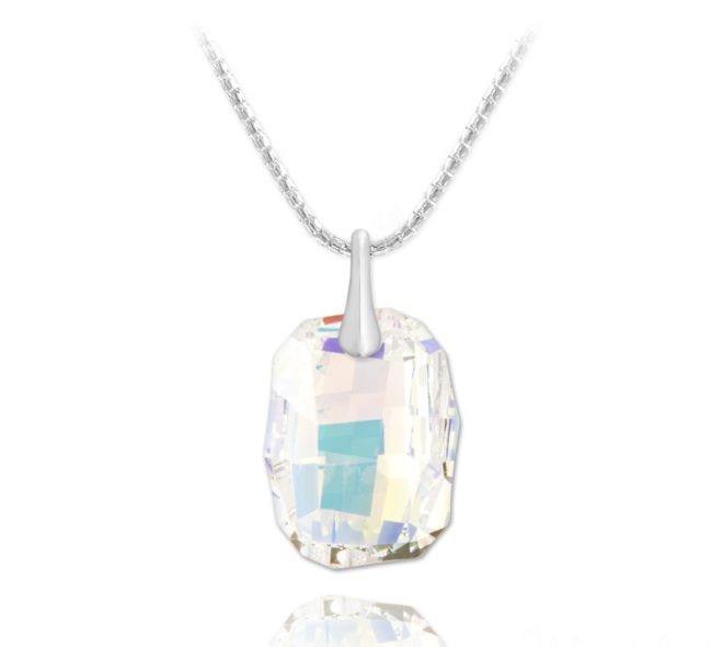 Collier composé d’un pendentif orné de Cristal ‘Aurora Borealis’ 19mm et d’une chaîne de 45cm / 1,2mm.