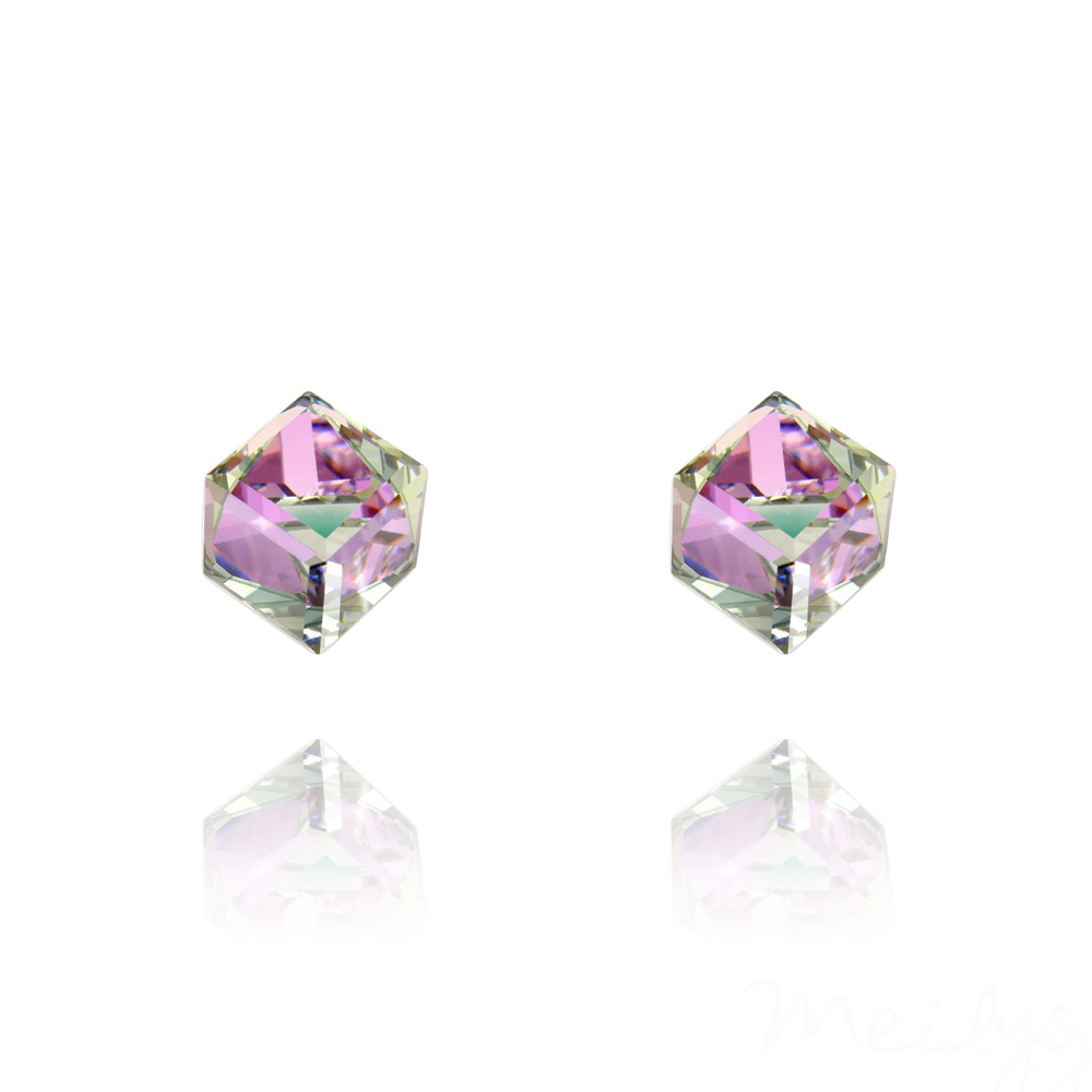 Parure Cube 6MM en Argent rhodié et Cristal Violet